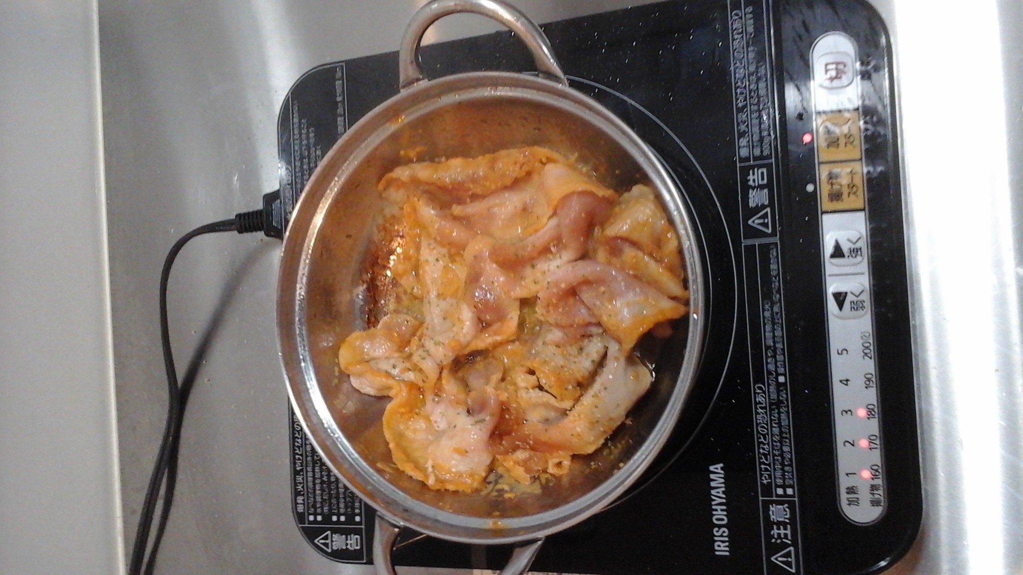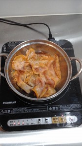 まず豚ロースを味噌とマジックソルトで炒めまして