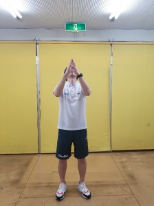 ②胸の前にお水をかいて呼吸動作です。手で進んでいるところで!