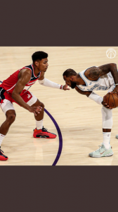 左が八村塁選手で、右がレブロン・ジェームス選手です。