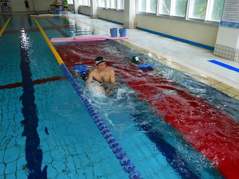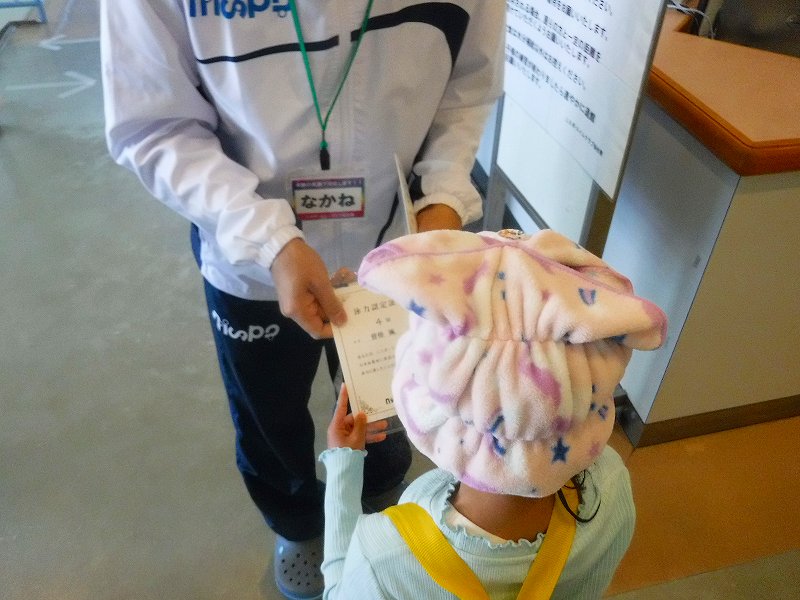 ↓泳力チェックは、進級テストのように一人ずつ・・・![]()