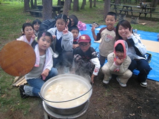 班ごとに分かれて子供たちだけで最終段階の鍋に