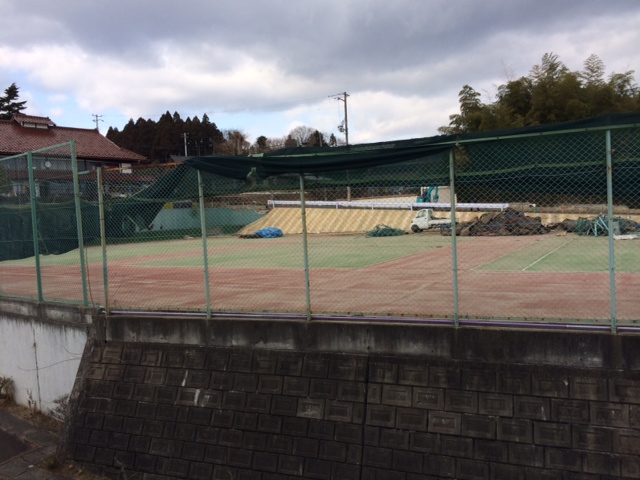 テニスコートのコート面の張替え?作業の真っ只中で、工事の音が響いています。プールの皆さんもそうですが、きっとテニス愛好家の皆さんも春が待ち遠しいこととお察しします