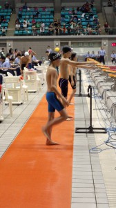 「次の組、〇コースに〇〇君(ニスポの選手)泳ぎますよ」