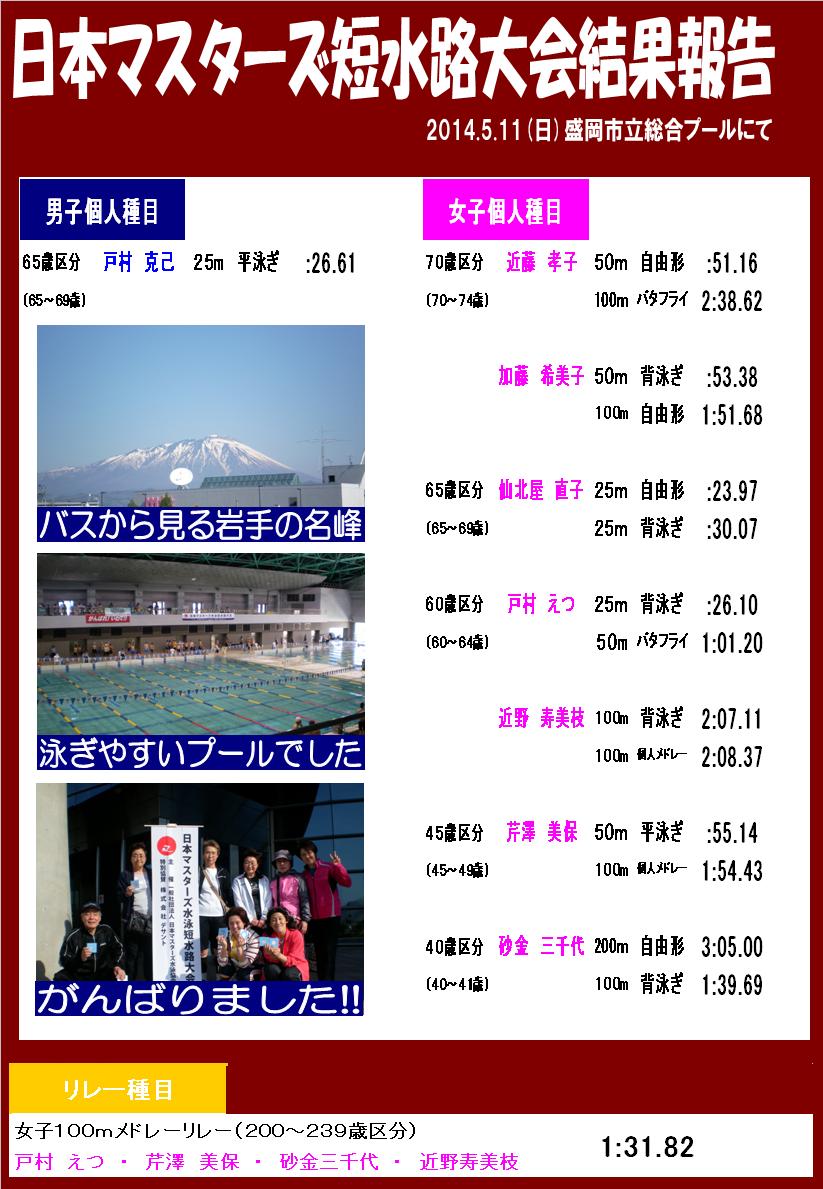 短水路マスターズ(盛岡会場) 結果報告 仙台南店