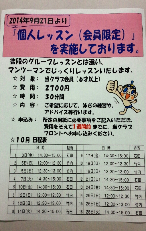 9月21日より、個人レッスンがスタートしています。おかげさまで、大好評です!!