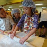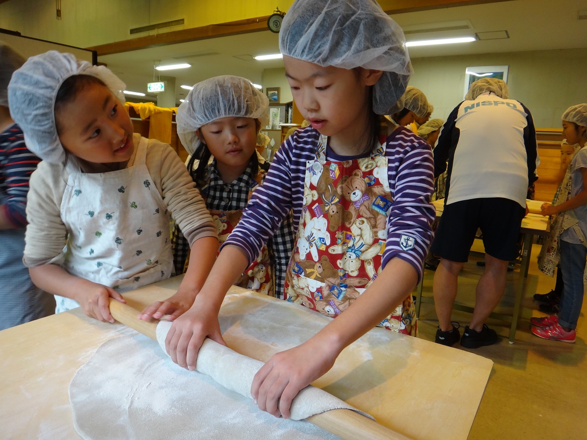 切るのが難しくてそばの形がバラバラな班、役割分担をしている班など、