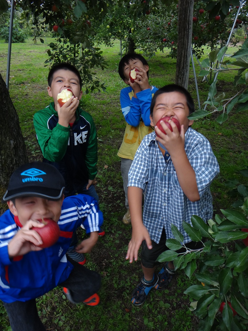 リンゴの木から自分で採るリンゴはとても美味しいようで、丸かじりをする子供も!!!