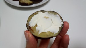 温めたハチミツとクリームチーズを絡め食べます![]()