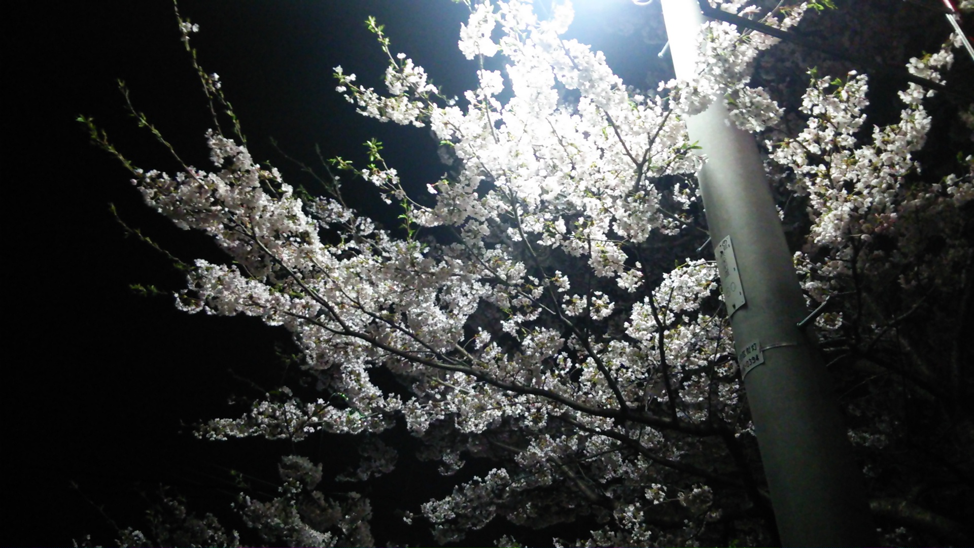 夜桜が綺麗だなとよく見ると、ほとんど葉桜でした。。。