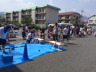 スタッフ手作りのうき棒で作ったパターゴルフ