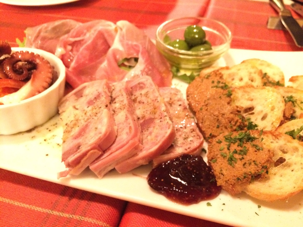 前菜、お肉、名物のラザニア、お肉パート2、パスタ、デザートと