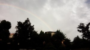 写真では少しわかりにくいですがかなりくっきりはっきりとした綺麗な虹でした。