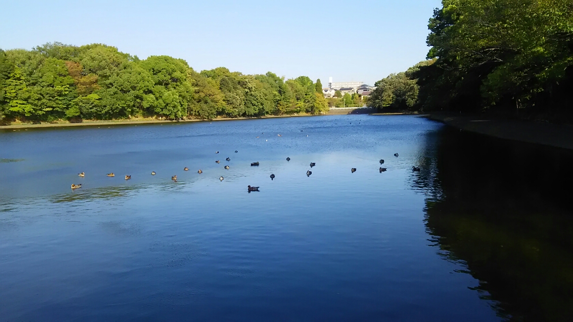 そんな池にも冬が近づくと渡り鳥がやってきて、カモなどが池にいっぱい浮かんでいる姿が見られるようになります。先日その池の周囲を散歩しているとカモたちの姿があったので写真に撮ってみました。「冬が近づいてきたなぁ。」としみじみしていたのですが、写真のきれいさに少し驚きました。池の水面が空の青さを映して真っ青になっています。自分にもきれいな写真が撮れることにうれしくなったのでした。