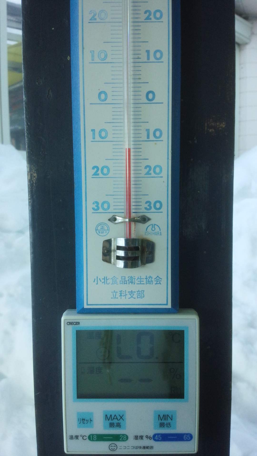 なんと朝一番の気温-12℃です。私には普段馴染みが無い気温なので写真を撮ったのだと思うのですが、数字だけ見るとすごく寒そうですね。