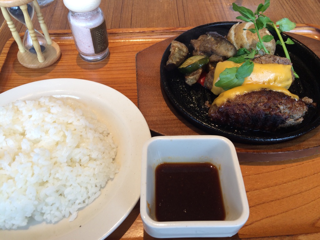 食べてみると外はカリカリ、中はジューシーなとっても美味しいハンバーグでとーっても幸せな気分になりました\(^o^)/![]()