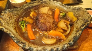 「炭火焼きハンバーグ デミシチュー定食」するか