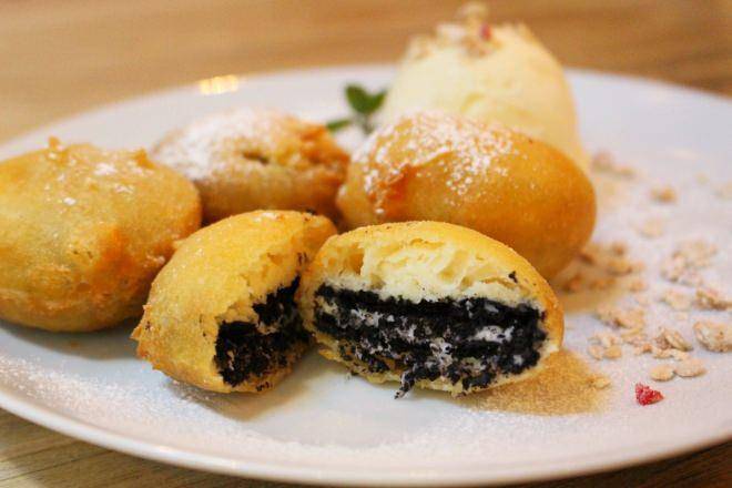 「オレオ」に、衣をつけて油で揚げたスイーツです。