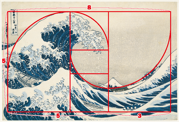 神奈川沖浪裏(かながわおきなみうら)の波の比率も黄金比だそうです。
