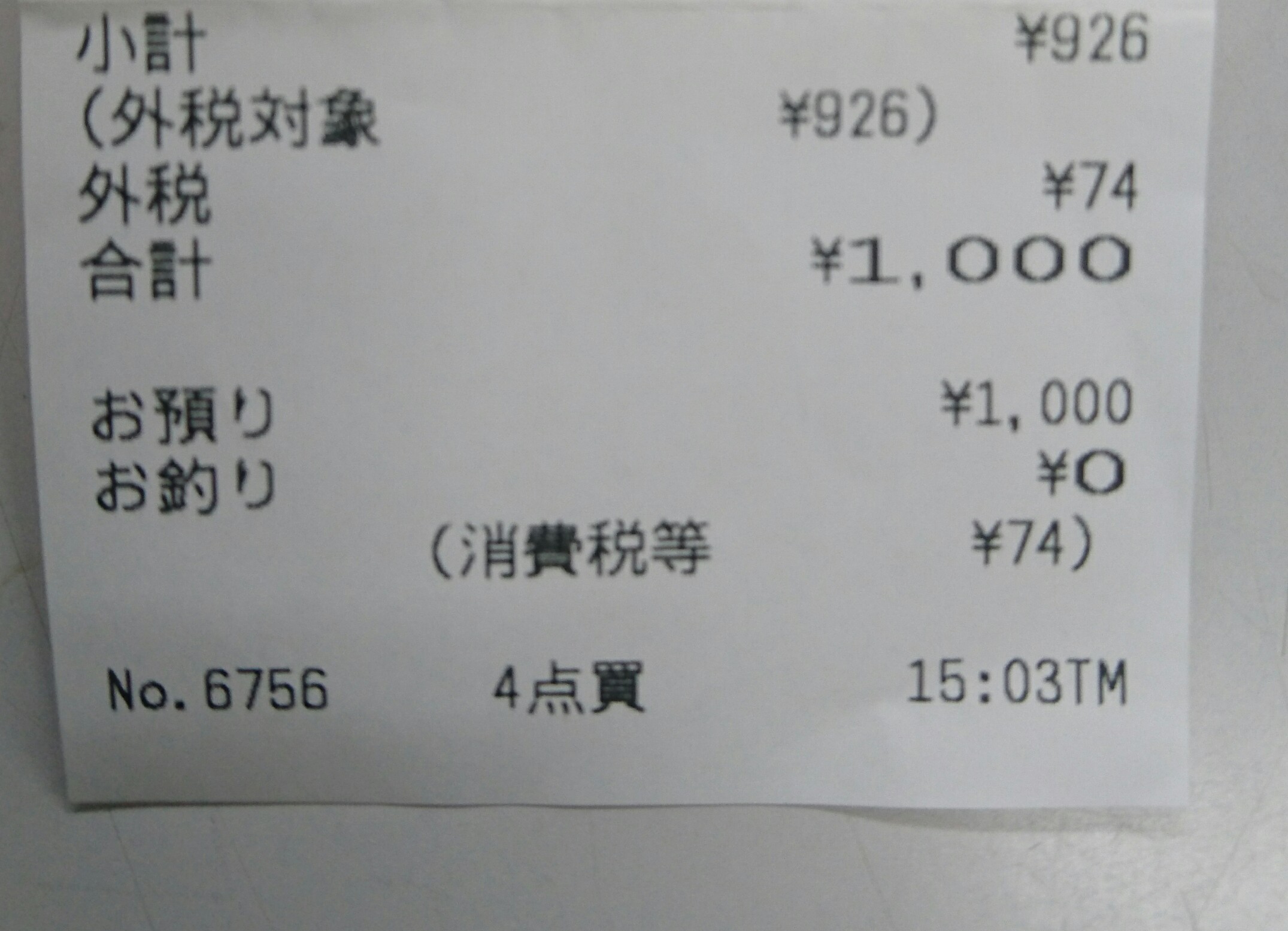 先日、買い物に行った時レジでの合計金額がピッタリ1000円でした![]()