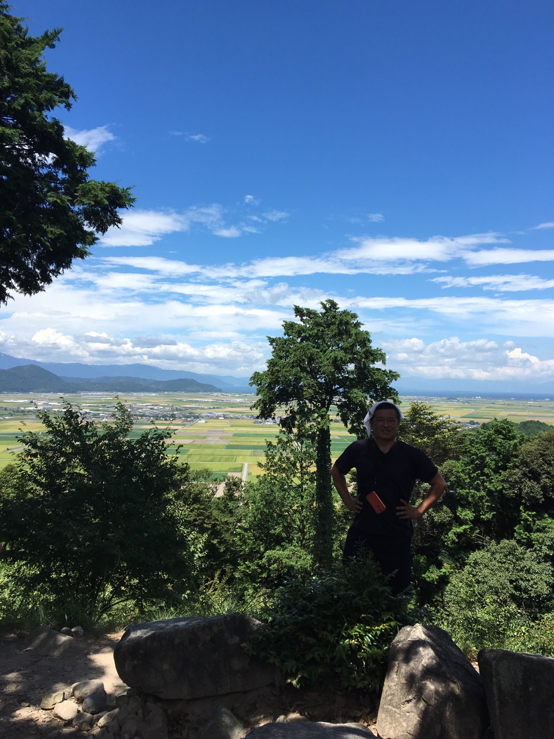 暑い中、山の上まで登り、景色を見渡しました。