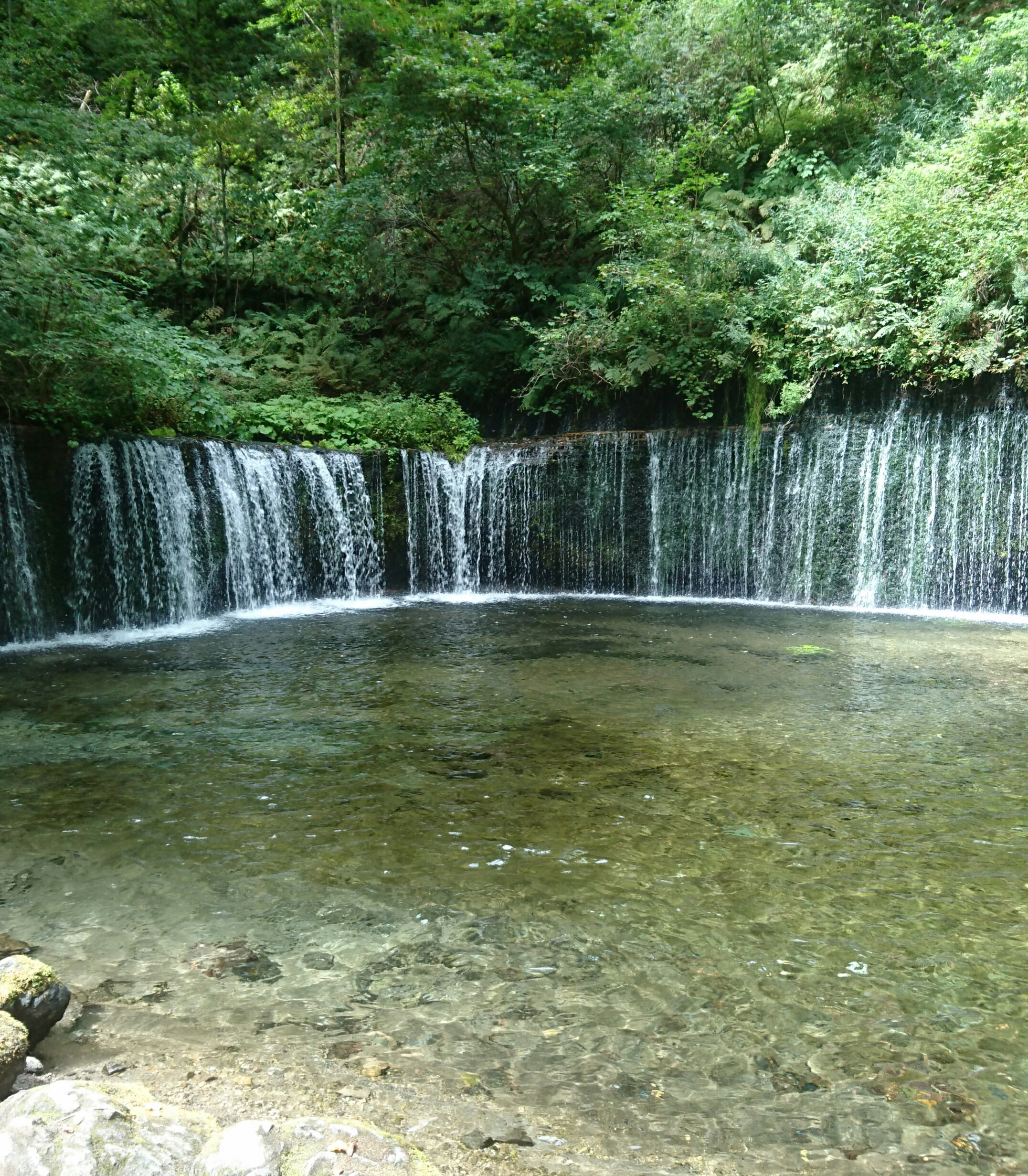 今回行ってきたところは『白糸の滝』という所で、滝の落差はそんなにないですが、この幅がすごく長くてとても綺麗でした。