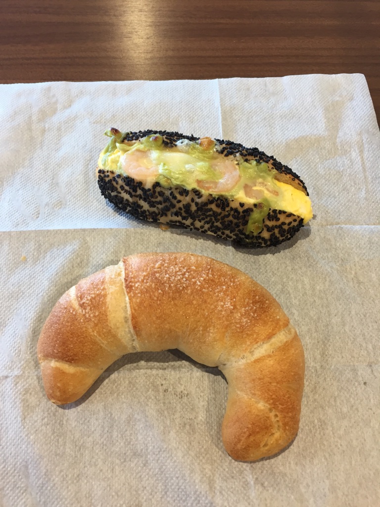 写真は下が「つのパン」で上は「えびたまサンド」です![]()