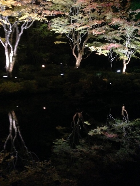 風が無い日に行くと波がたたないので、暗さで鏡のようになっている池に、周りの紅葉が映ってとても幻想的な風景が見られます![]()