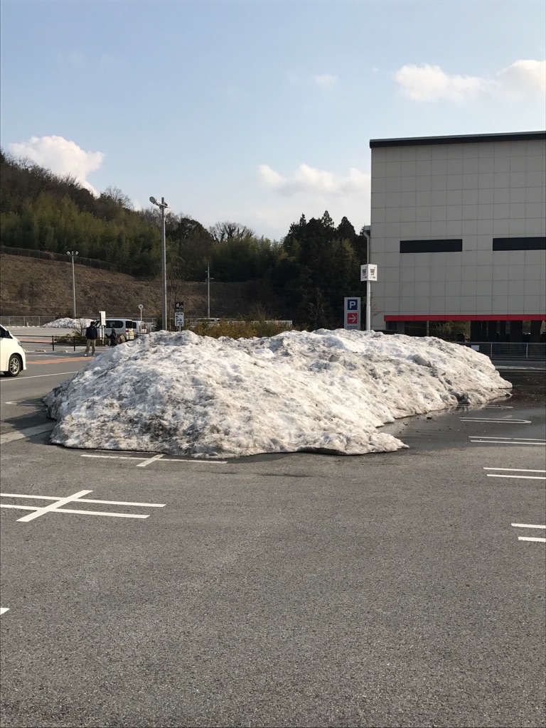 スーパーの駐車場には雪かきしたままの雪がまだこんなに・・・