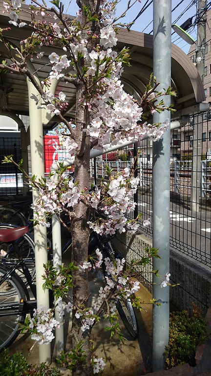 毎日毎日通る道なのに、今までここに桜の木があるなんて気がつきませんでした![]()