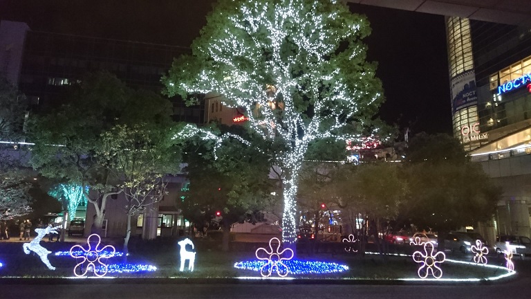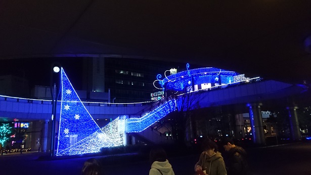 写真は、溝の口駅のイルミネーションです![]()