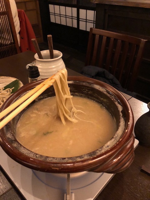 お鍋の〆にはもちろん手打ちそばの太麺が