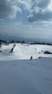 反対側にはびわ湖を臨める絶景の中気持ちよくオリンピック代表選手の気分で滑ってきました。