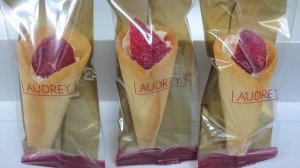 ラングドシャ生地にクリームとイチゴが巻かれています![]()