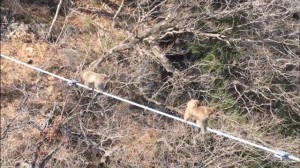 小猿がお母さんのお尻辺りにぎゅっとくっついていて