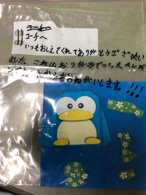 私がペンギン好きなのを知ってか、折り紙でつくってくれました。
