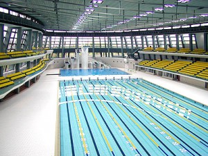 早速?50mプールで練習です。京都アクアリーナにおいて、