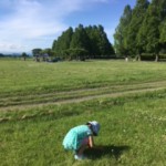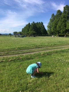 ヘビイチゴを摘むのに夢中な4歳の娘です。