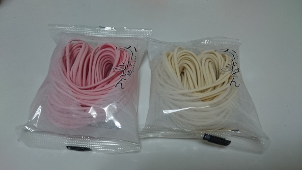 可愛らしいパッケージで麺の色がピンクと白でした![]()