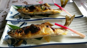 川が増水していてつかみ取りはできませんでしたが、とってもおいしい鮎を塩焼きで2尾も頂きました。