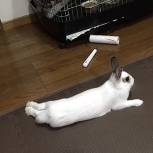 ちなみに下の写真は、我が家の愛兎ですが、同じように座ります。