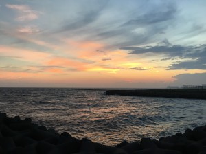 夕焼けが凄くキレイで、心が洗われました(笑)