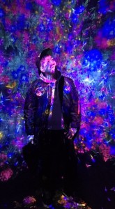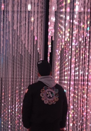 LEDのライトが天井から吊るされている光の美しい世界を体験できるアートもありました!