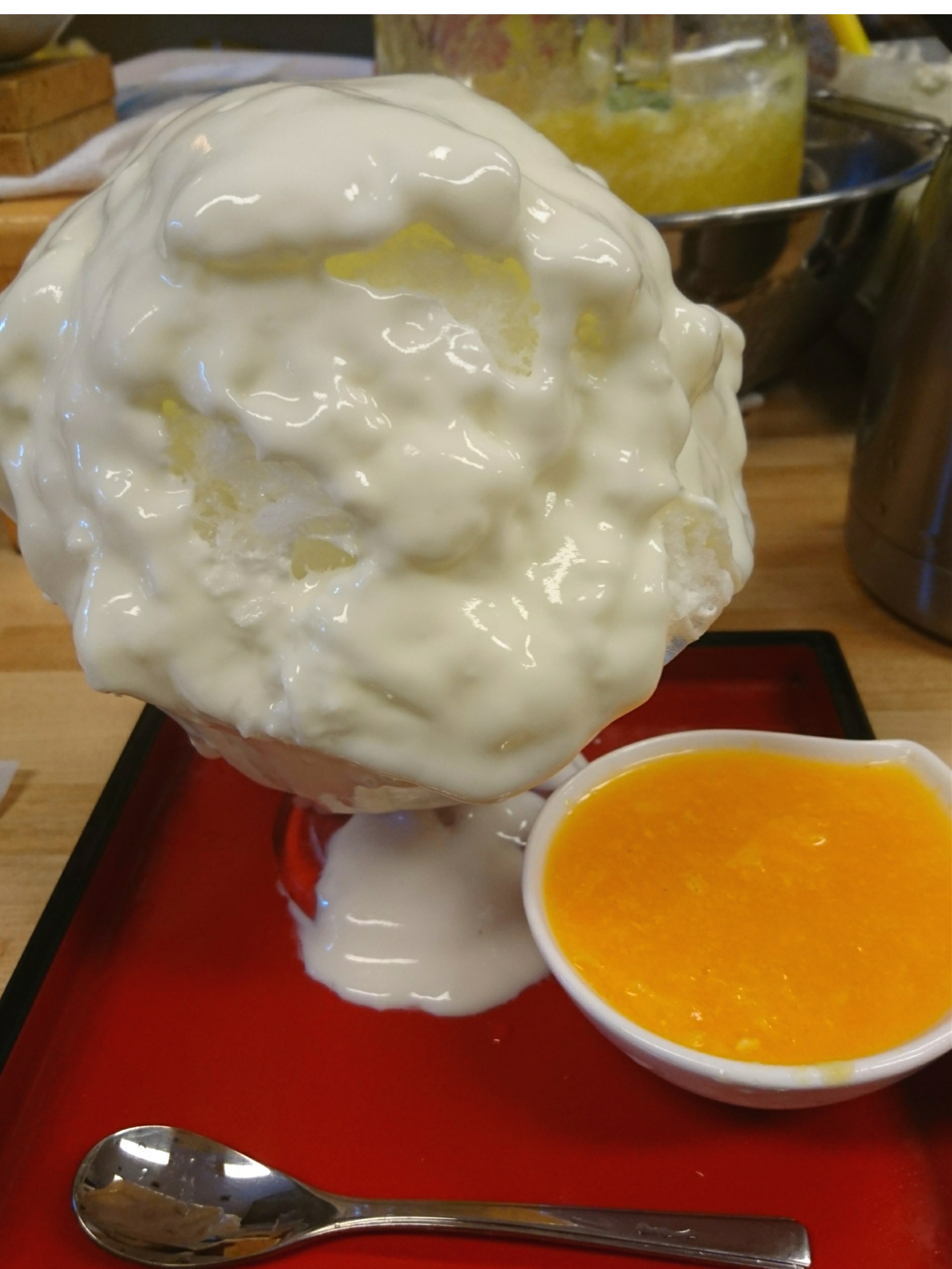 今年初となるかき氷でしたが、ヨーグルトソースにみかんのシロップをかけて食べる
