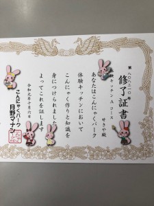 した際頂いた修了書です。他に写真も撮ってもらえるので良い記念になりました。