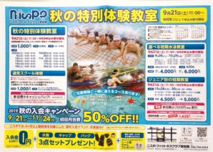 本日は『ジュニア向け秋の短期水泳教室』のご案内です。![]()