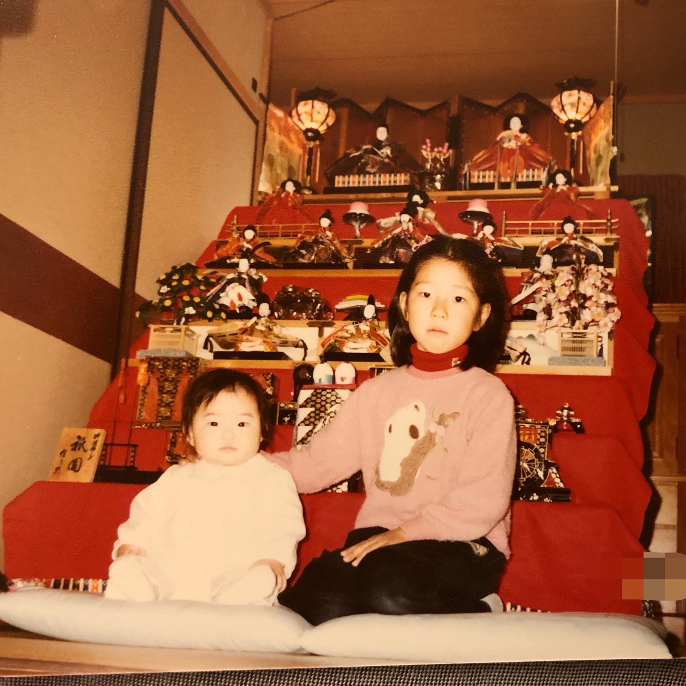 (岩槻出身のひな人形と 左:私 右:姉)