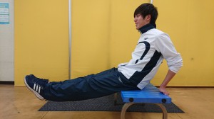 (両手はおしりの後ろにつき、少し身体を斜め後ろに倒します。)