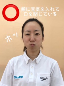 ☆ 頬(ほほ)に空気を入れて、口を閉じましょう。プンプンと怒った時のような口です!