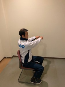 ②腕の曲げ伸ばし←片方5回~10回を行います。