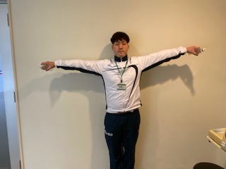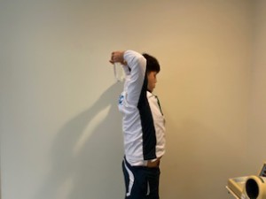 ②肩甲骨を寄せて胸をしっかりと張り、腕を伸ばしましょう!